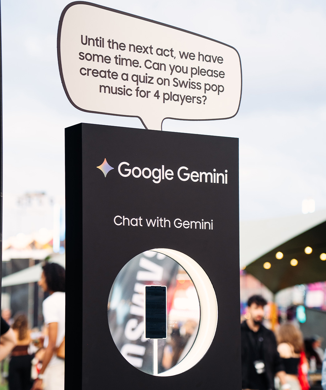 Mit hochwertigem, individuell gestaltetem Mobiliar und interaktiven Ausstellungsstücken entstanden Räume, die neugierig machten und zum Ausprobieren einluden. Auch am Zürich Openair wurde eine Umgebung geschaffen, die tausende Menschen ansprach und den Austausch über Technologie auf spielerische Weise förderte.