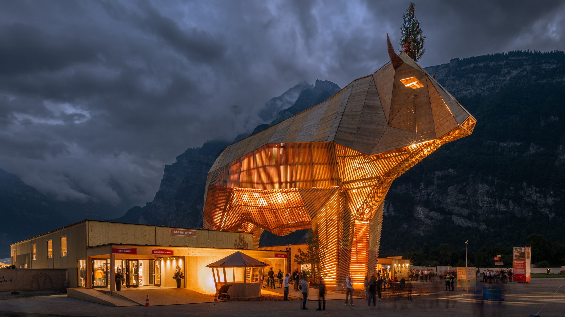 At ESAF 2025 in Mollis, Muni Max was presented to the public for the first time and immediately evolved into an iconic landmark. More than 240 Swiss companies and institutions joined forces for a shared purpose: promoting Swiss-grown, renewable wood as a valuable national resource. Muni Max stands as a symbol of a regionally connected forest and timber industry that is actively building the future.
